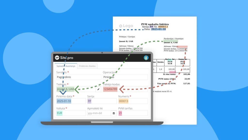 Site.pro apskaitos programa žymiai palengvina darbą tiek buhalteriams, tiek individualiems verslininkams. DI pagrindu veikiantis sąskaitų atpažinimas – tik viena iš daugelio programos galimybių. Be to, Site.pro siūlo: